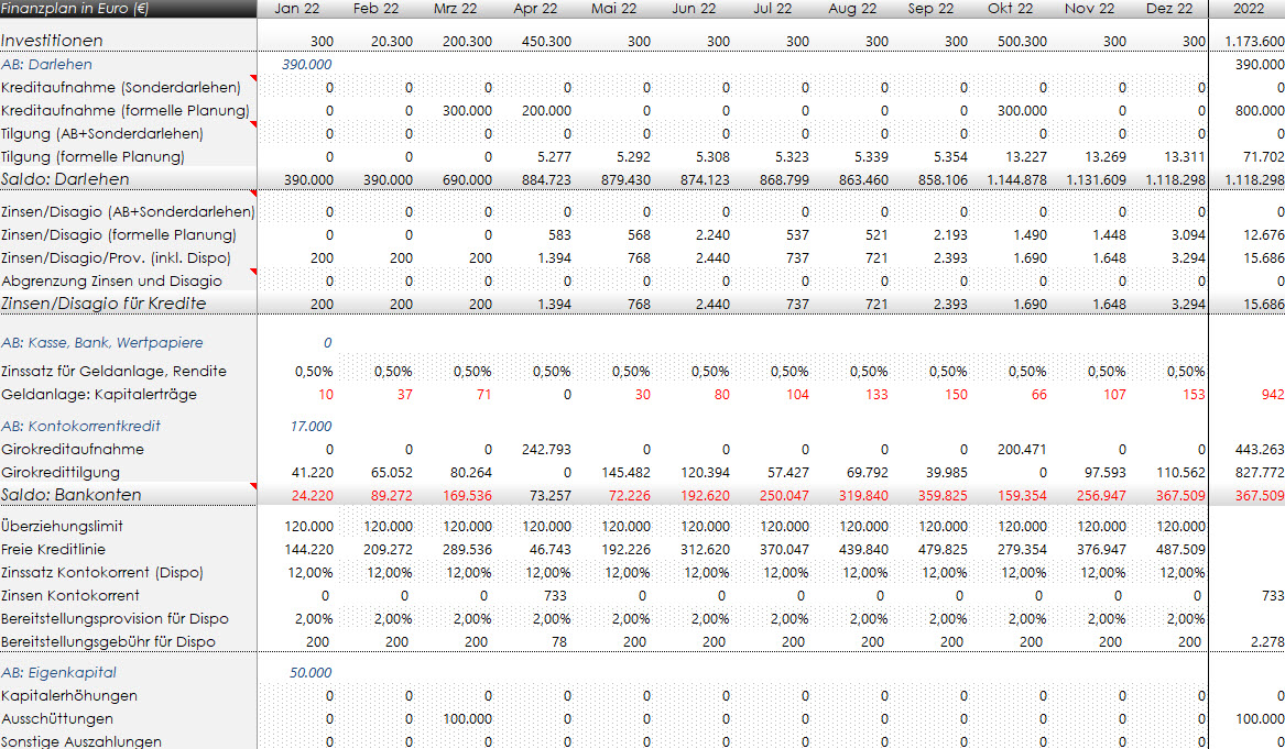 Um nach Abschluss der Umsatz- und Kostenplanung den Bedarf an finanziellen Mitteln abzuschätzen, reicht ein Blick in den Liquiditätsplan aus.